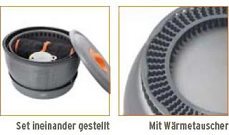 Ein reichhaltig ausgestattetes Kocherset für den Betrieb mit Spiritus. Innovativ in dieser Klasse ist der Wärmetauscher an den Töpfen, der hilft, den Brennstoff effektiver zu nutzen.