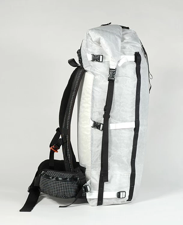 Ultraleichter Rucksack für Langtouren, Alpintouren, Packraften. Cleanser Schnitt, hohe Zuladung, robustes DCF-Material (Dyneema® Composite Fabrics – früher ´Cuben´). Die Nähte wurden getaped für höhere Wasserdichte. Da die Nähte am Tragesystem produktionsbedingt nicht getaped werden können, sollte trotzdem ein liner verwendet werden, wenn auch ein ganz kleines bischen Feuchte auf gar keinen Fall an den Rucksackinhalt kommen soll. Der CEO von HMG hat den Porter Pack beim Raften getestet, mit reichlich überkommendem Wasser, und sagt genau das: der Pack ist wasserdicht, aber ein paar Tropfen können unter ganz nassen Umständen durch die nicht getapeden Nähte kommen. Für die meisten Nutzer überhaupt kein Problem…