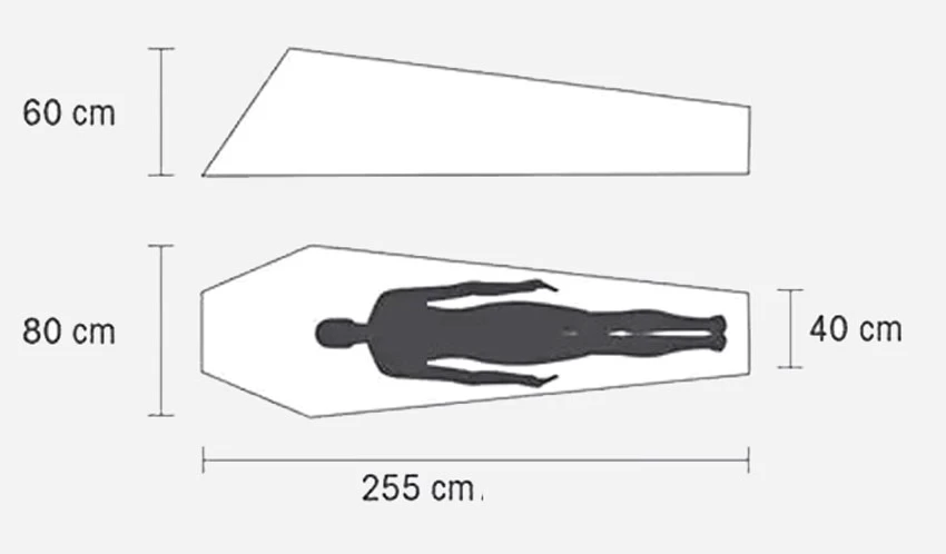 Ein Biwaksack, der schon fast ein Solo-Zelt ist. Ungewöhnlich für einen Biwaksack ist der Gestängebogen, der das Kopfteil hoch und luftig hält. Mensch kann den Eingang nachts geöffnet lassen, vor Insekten, die das nutzen könnten, schützt ein Moskitonetz.