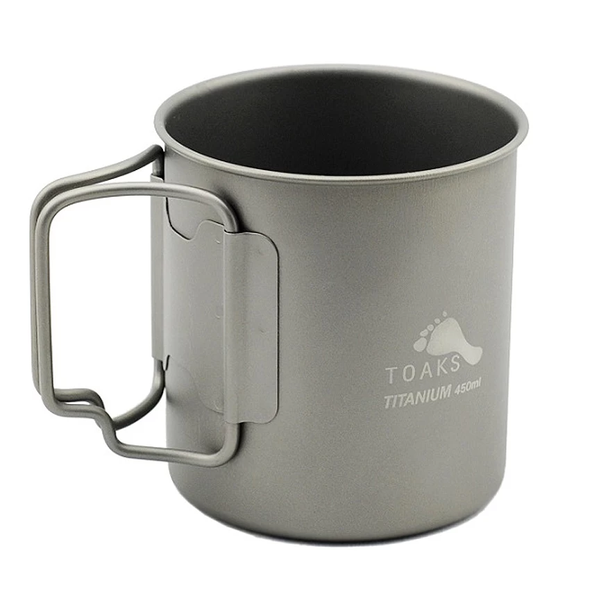 -Ein ultraleichter Trinkbecher aus Titanium mit 450 ml max. Volumen und Deckel. Kann auch als Mini-Kochtopf genutzt werden.