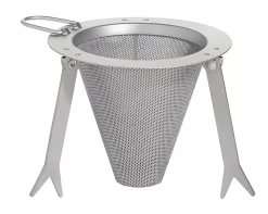 Wer Kaffee auf Tour auf die gute alte Filter-Methode bereiten möchte, für den ist dieser Filteraufsatz gedacht. Der wird direkt auf Tassen, Becher oder Kannen gesetzt, kommt ohne Papierfilter aus – damit kann er unbegrenzt ohne Nachschub-Probbleme und ohne weitere Kosten genutzt werden. Der Filter aus doppeltem Titanium-Mesh ist fein genug für alle Kaffeesorten, er ist absolut geschmacksneutral. Der Filter passt für den Transport in einen grösseren Becher – sehr platzsparend.
